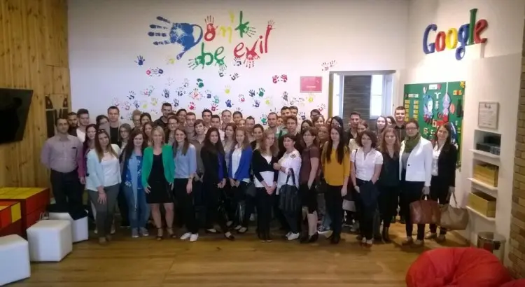 Hagyományainkhoz híven idén is megrendeztük tanulmányi kirándulásunkat a HVG Állásbörzére. A Börze előtt szakmai előadásokon vettünk részt a Google-nél, illetve az Európai Bizottság Magyarországi képviseleténél. Tudásunkat bővítettük alapvető Google Adwords ismeretekkel, illetve megtudhattuk, hogy mit is gondol az Európai Unió Magyarország gazdaságpolitikájáról, hogyan értékelik az elmúlt éveket Brüsszelben.